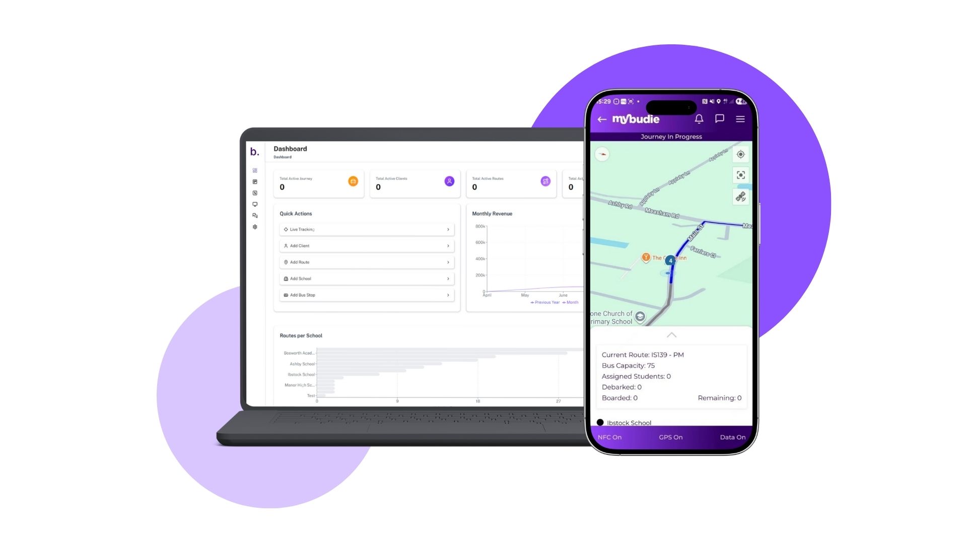 Whether it's route planning, vehicle tracking, passenger management, or financial tracking, all elements of the mybudie platform works in harmony, providing you with the comprehensive data and insights needed to optimise your travel network.
